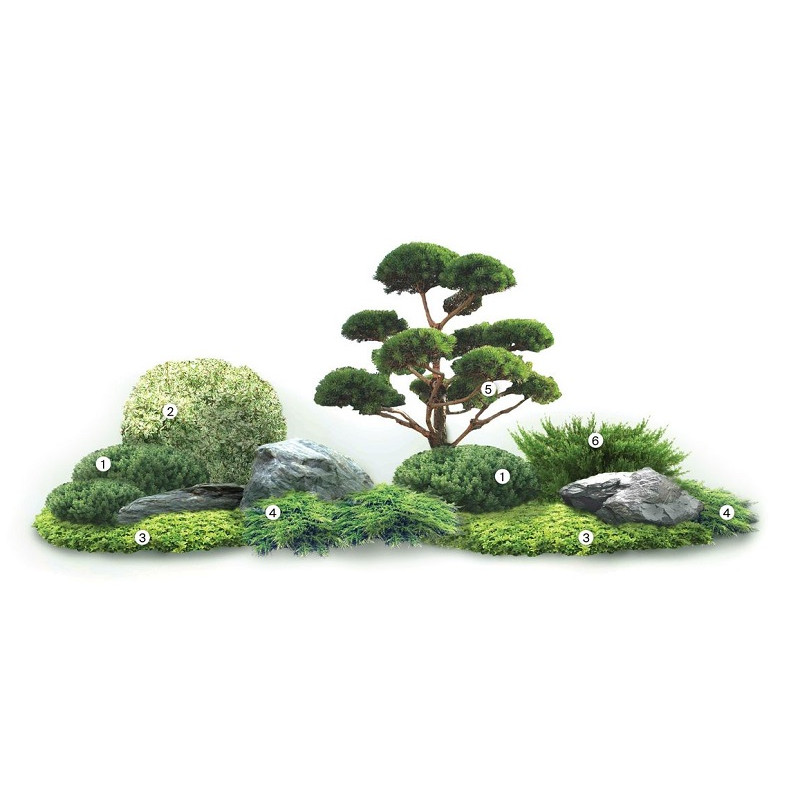 Biljke japanskog vrta : japanski javor, sorte ukrasne trešnje, magnolija, japanski bagrem, rododendron, nandina, kineska kleka, šimšir, tisa, razni niskorastujući borovi, aukuba, ukrasne trave, japanska ukrasna dunja, osmantus, šarenolisna božikovina, euonimus, japanska vrba, lovor višnja, fotinija, zimzeleno drveće orezivano u obliku, elaeagnus, zimzelena bangita, citisus, hosta, pahisandra
